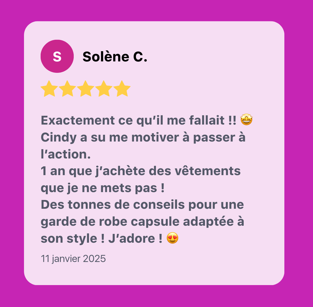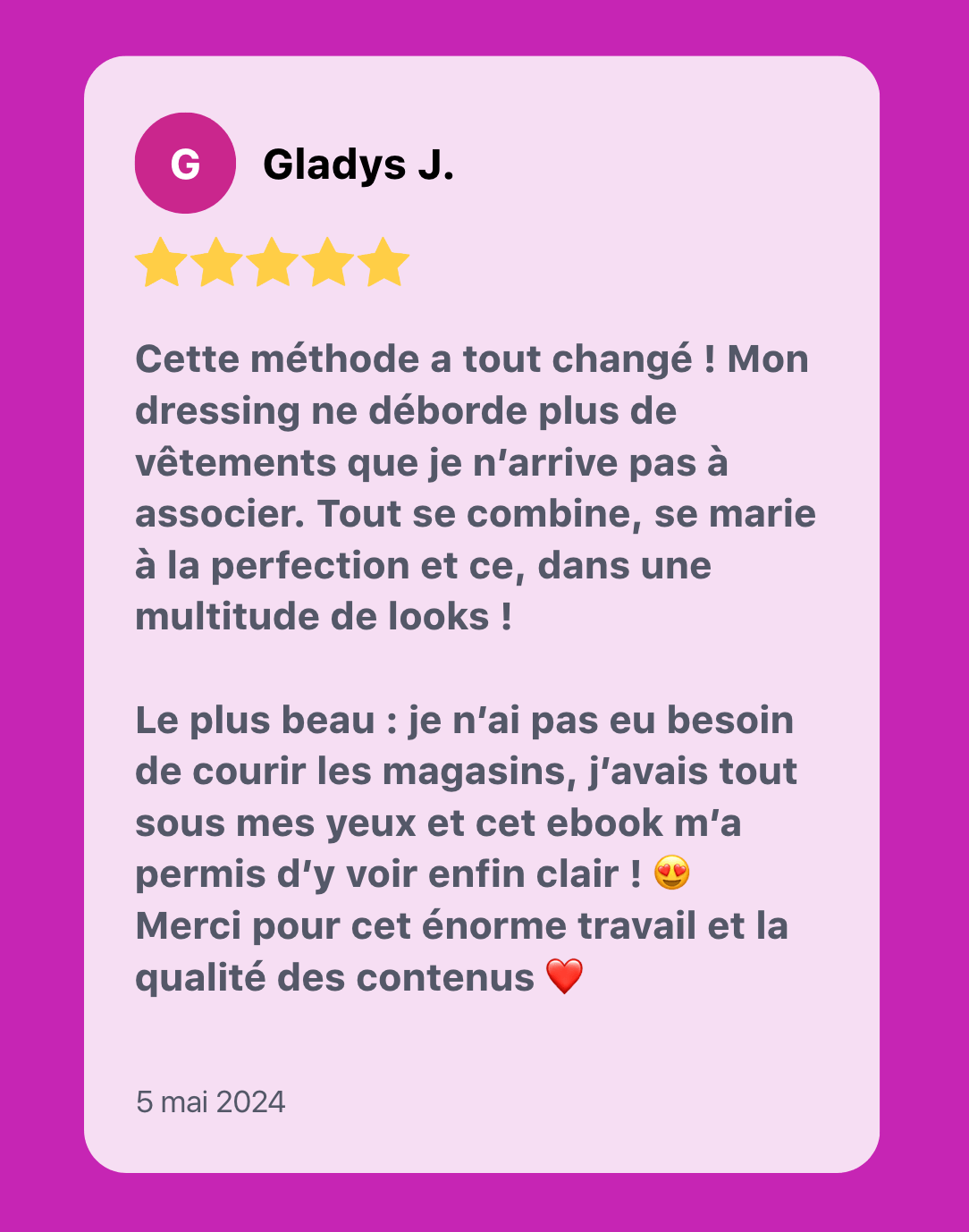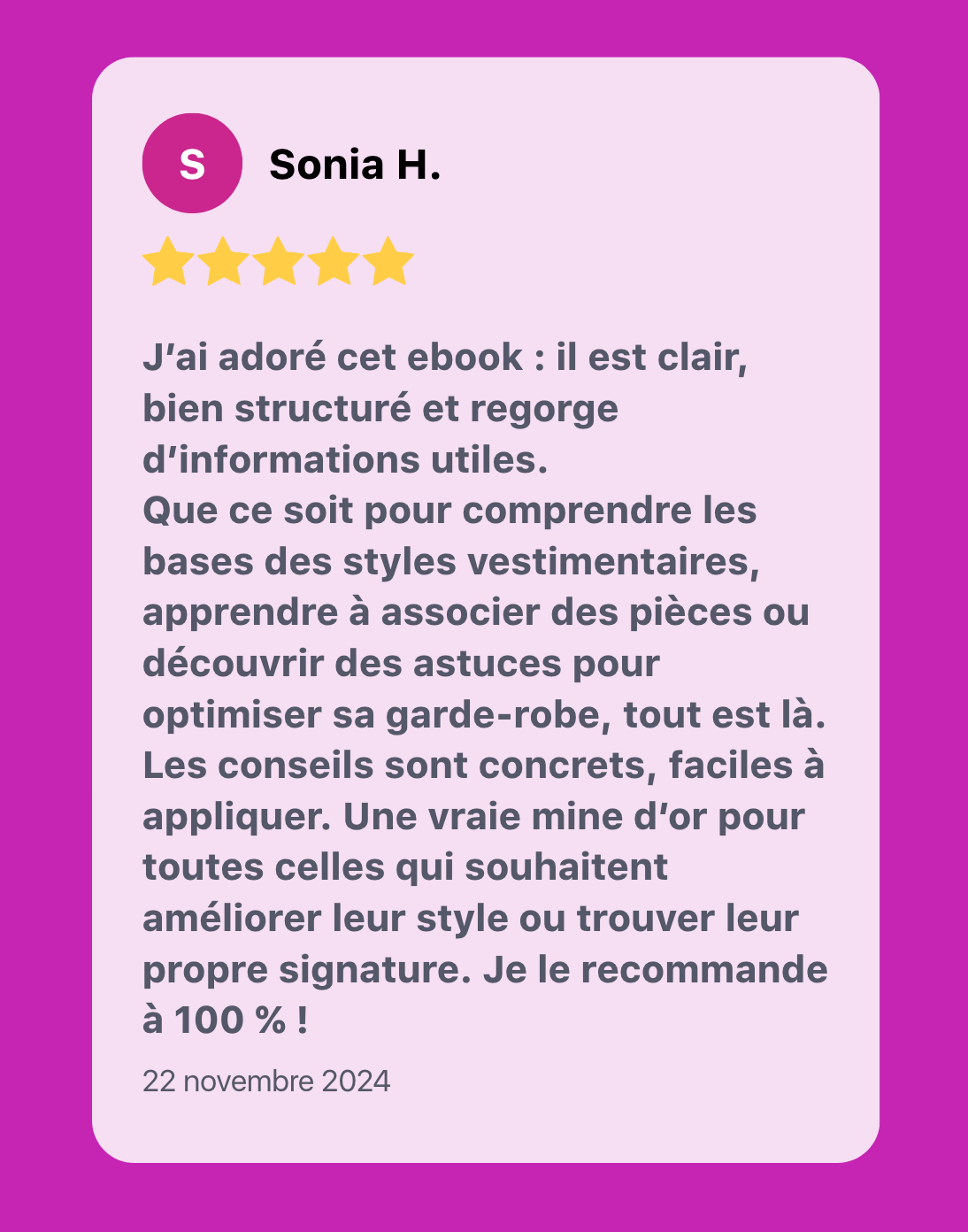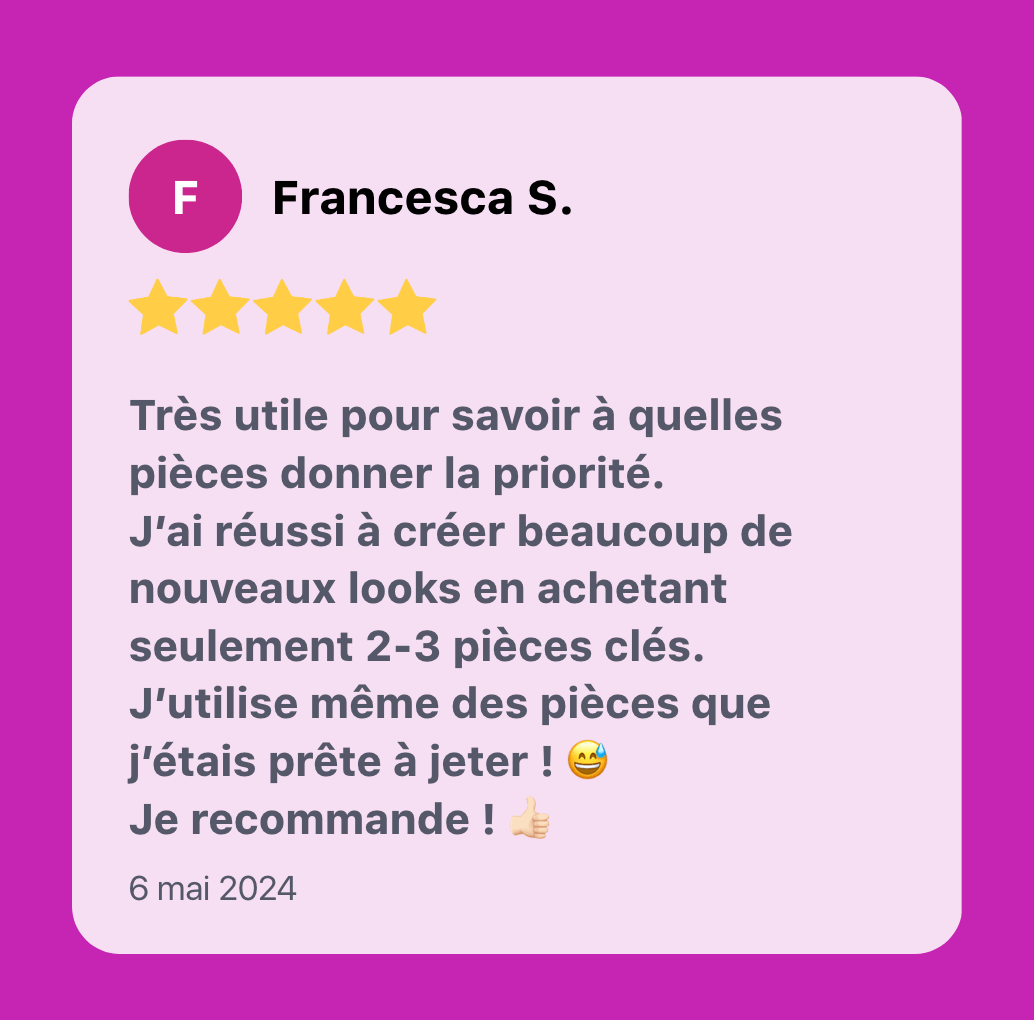 ✅ Tu n’as pas besoin de "talent" ou de "don pour le style". Tu suis une méthode pas à pas, pensée pour toi, et ça marche même si tu doutes ou si tu tu es perdue avec ton style.