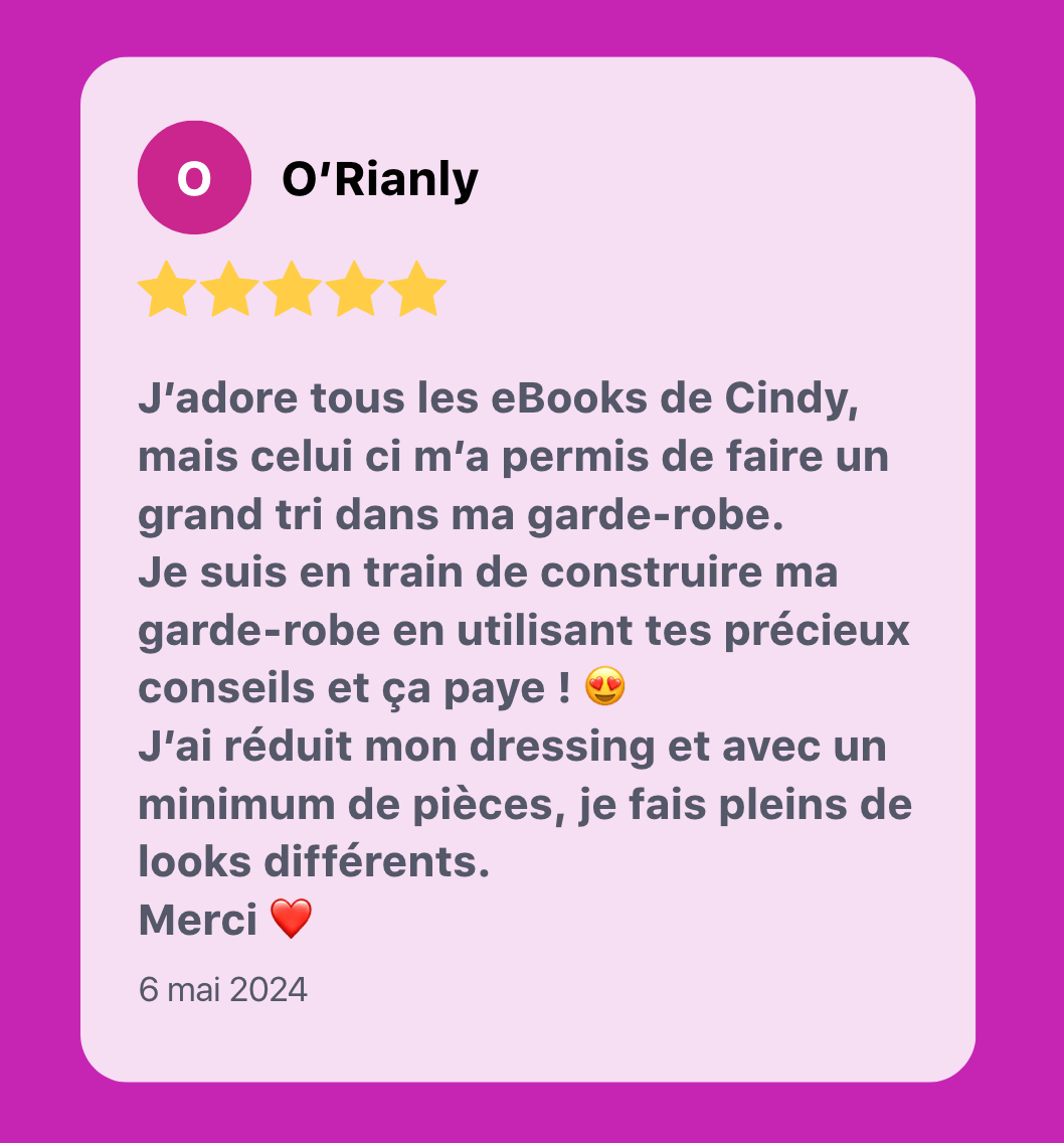 Un guide clair et facile à appliquer, pour créer une garde-robe stylée, cohérente et alignée avec ta vraie vie, où chaque pièce fonctionne avec toutes les autres.