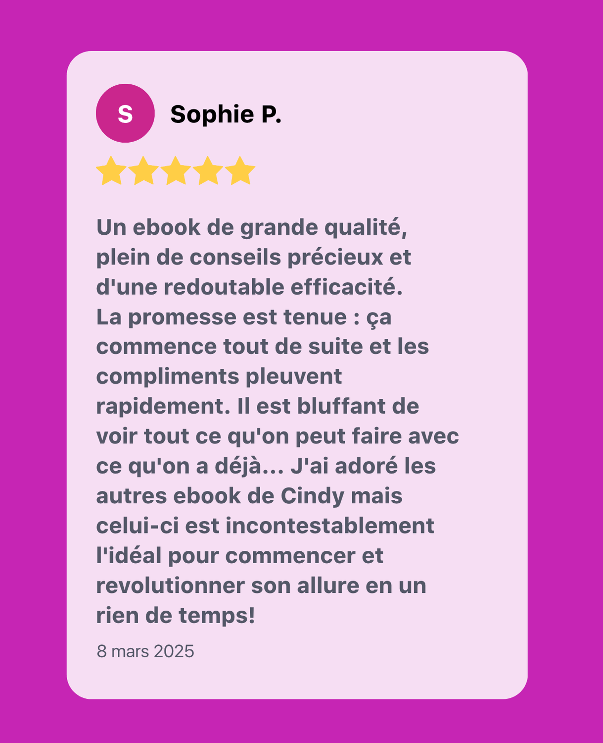 Tu vas sentir ton assurance exploser quand on te dira “J’adore ton look, tu es trop stylée” — et savourer ton petit secret : tu as fait tout ça avec ce que tu avais déjà chez toi.